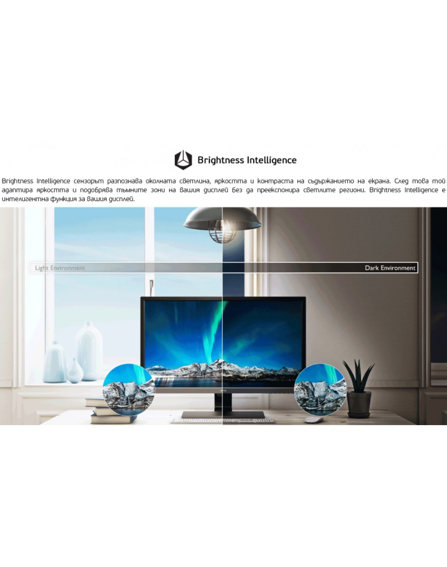 | Други | Flicker-free Technology, Low Blue Light, Brightness Intelligence, Headphone Jack, Audio Line In |