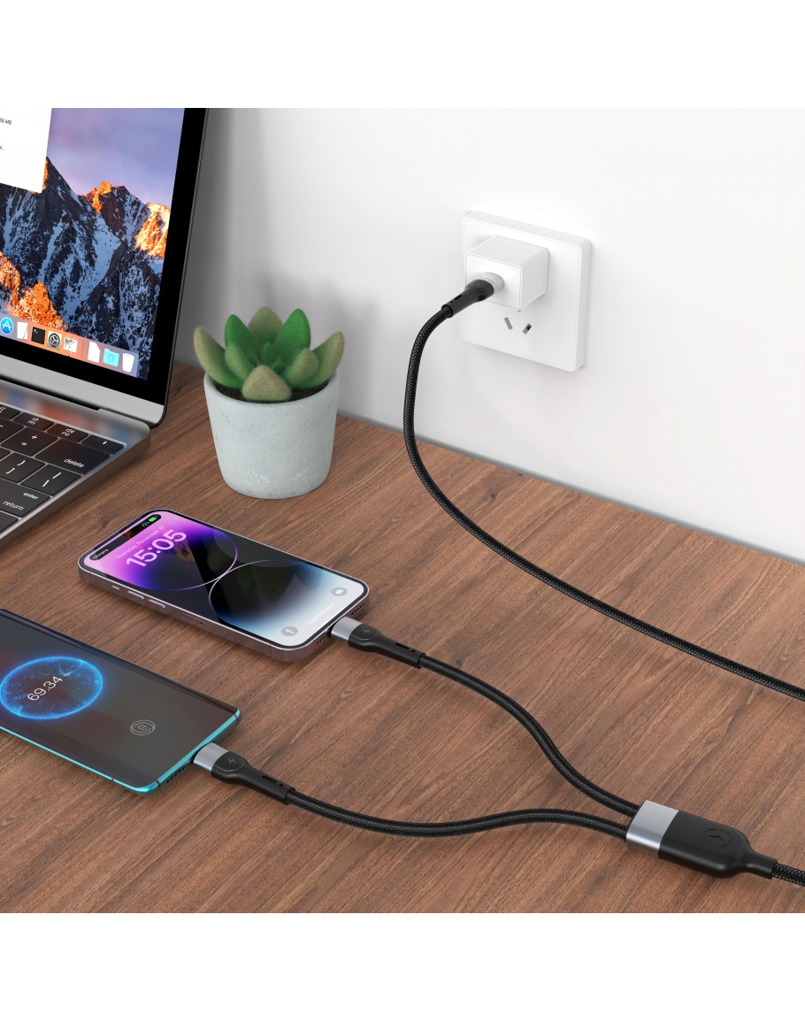 Кабел за данни DeTech DE-49CCL, 2 в 1, Type-C - Type-C, Lightning, 1.0m, Черен - 40514