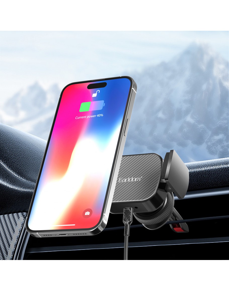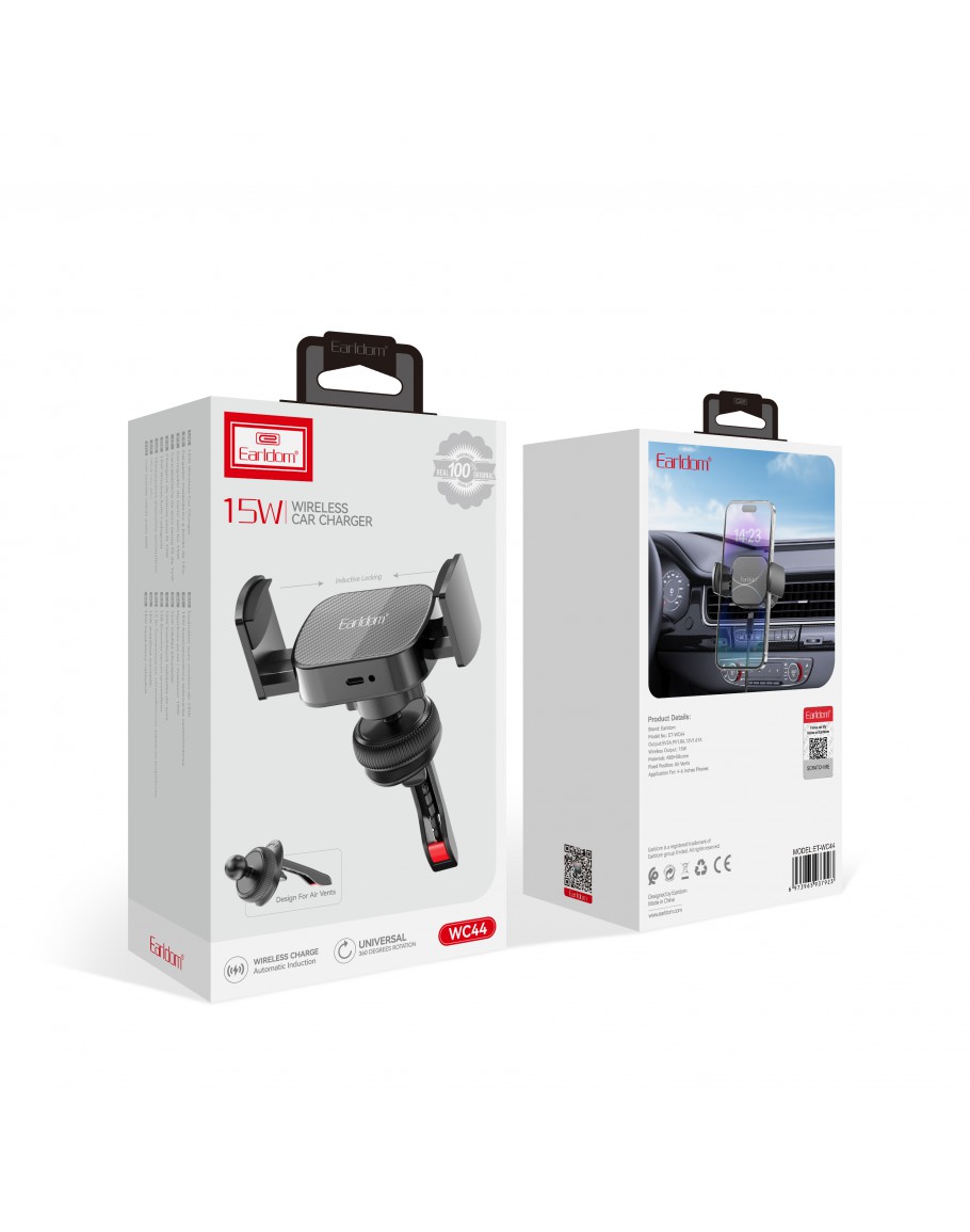 Универсална стойка за телефон Earldom ET-WC44, Безжично зарядно, Черен - 40346