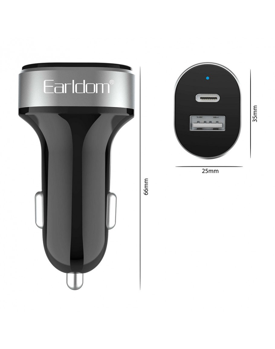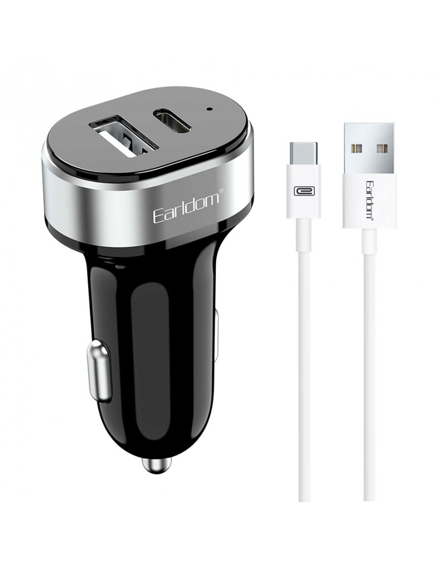 Зарядно устройство за кола Earldom ES-CC14, 1xUSB, 1xType-C, С Type-C кабел, Черен - 40243
