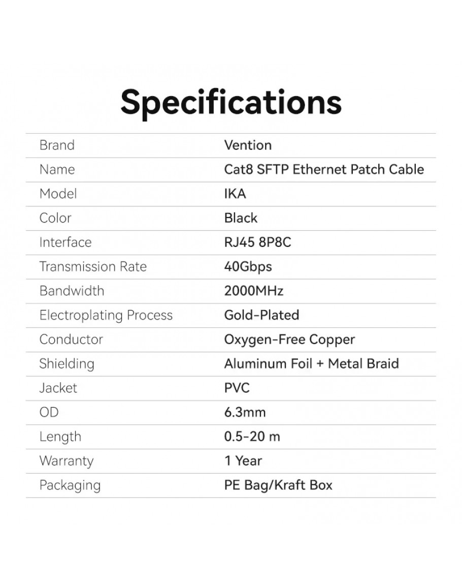 Vention Кабел LAN SFTP Cat.8 Patch Cable - 3.0M Black 40Gbps - IKABI