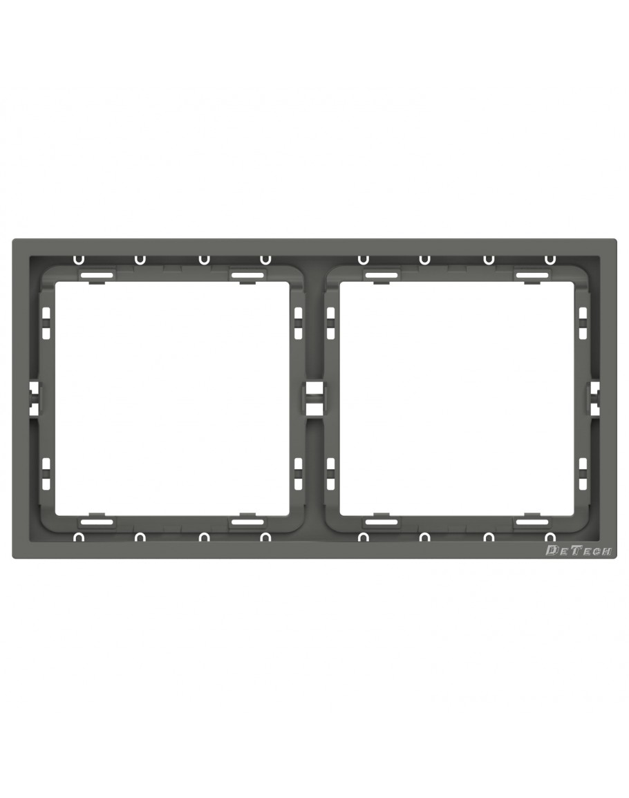 Хоризонтална рамка в сив цвят и висококачествено матово покритие. За комбиниран монтаж на два електрически модула от серията DE-9227 на DeTech.