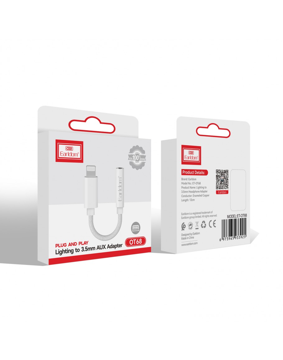 Преходник Earldom ET-OT68 Lightning към 3.5mm F, 0.12m, Бял - 40368