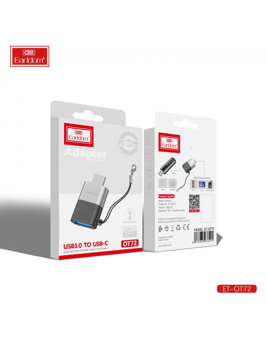 Преходник Earldom ET-OT72, USB (F) към Type-C, OTG, Черен - 40366