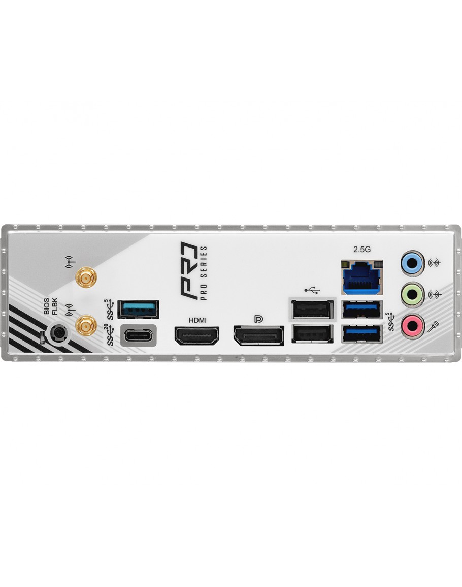 | I/O | 2 x Antenna Ports;1 x HDMI Port;1 x DisplayPort 1.4;1 x USB 3.2 Gen2x2 Type-C Port (20 Gb/s);3 x USB 3.2 Gen1 Ports;2 x USB 2.0 Ports;1 x RJ-45 LAN Port;1 x BIOS Flashback Button;HD Audio Jacks: Line in / Front Speaker / Microphone | |