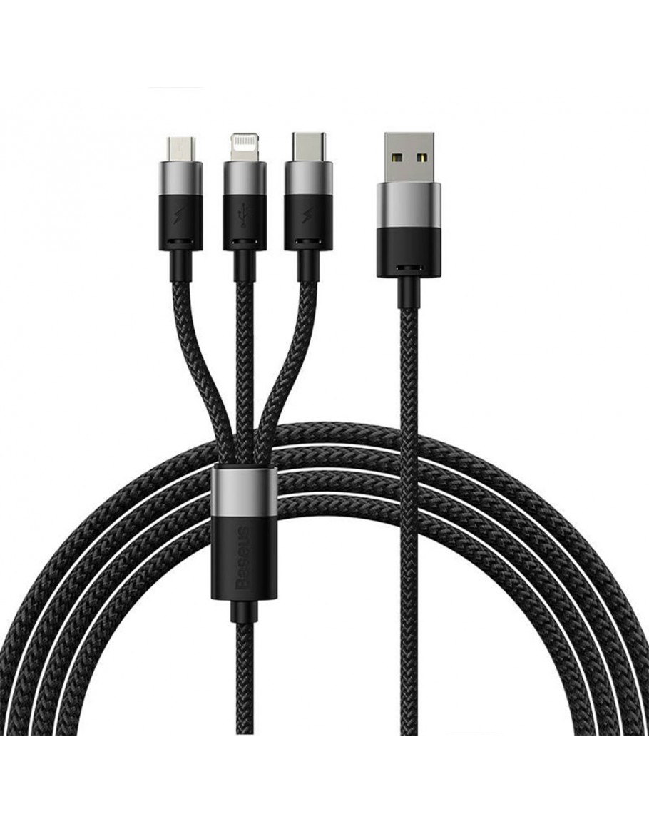Кабел за зареждане Baseus StarSpeed, 3 в 1, Micro USB, Lightning, Type-C, 1.2m, Черен - 40491