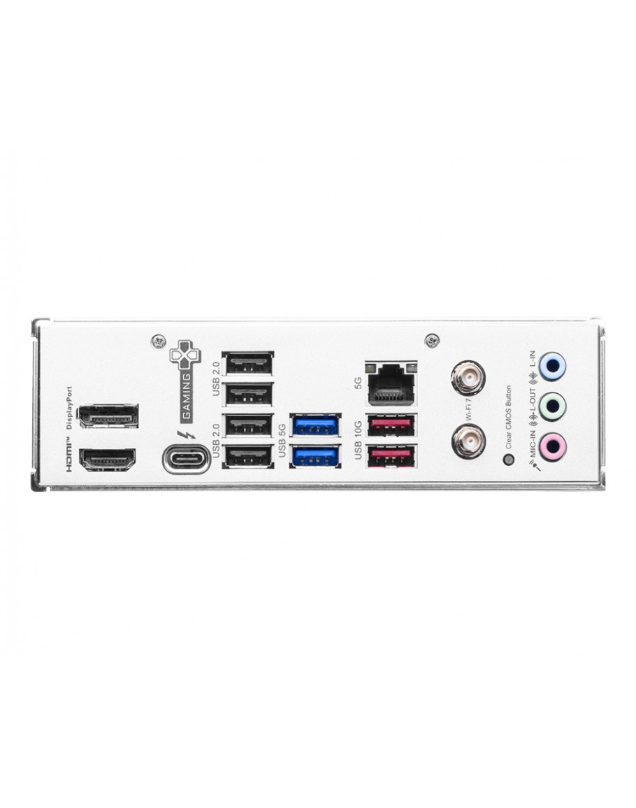 Wireless  Intel® Killer™ BE1750x Wi-Fi 7;The Wireless module is pre-installed in the M.2 (Key-E) slot;Supports MU-MIMO TX/RX, 2.4GHz / 5GHz / 6GHz* (320MHz) up to 5.8Gbps;Supports 802.11 a/ b/ g/ n/ ac/ ax/ be