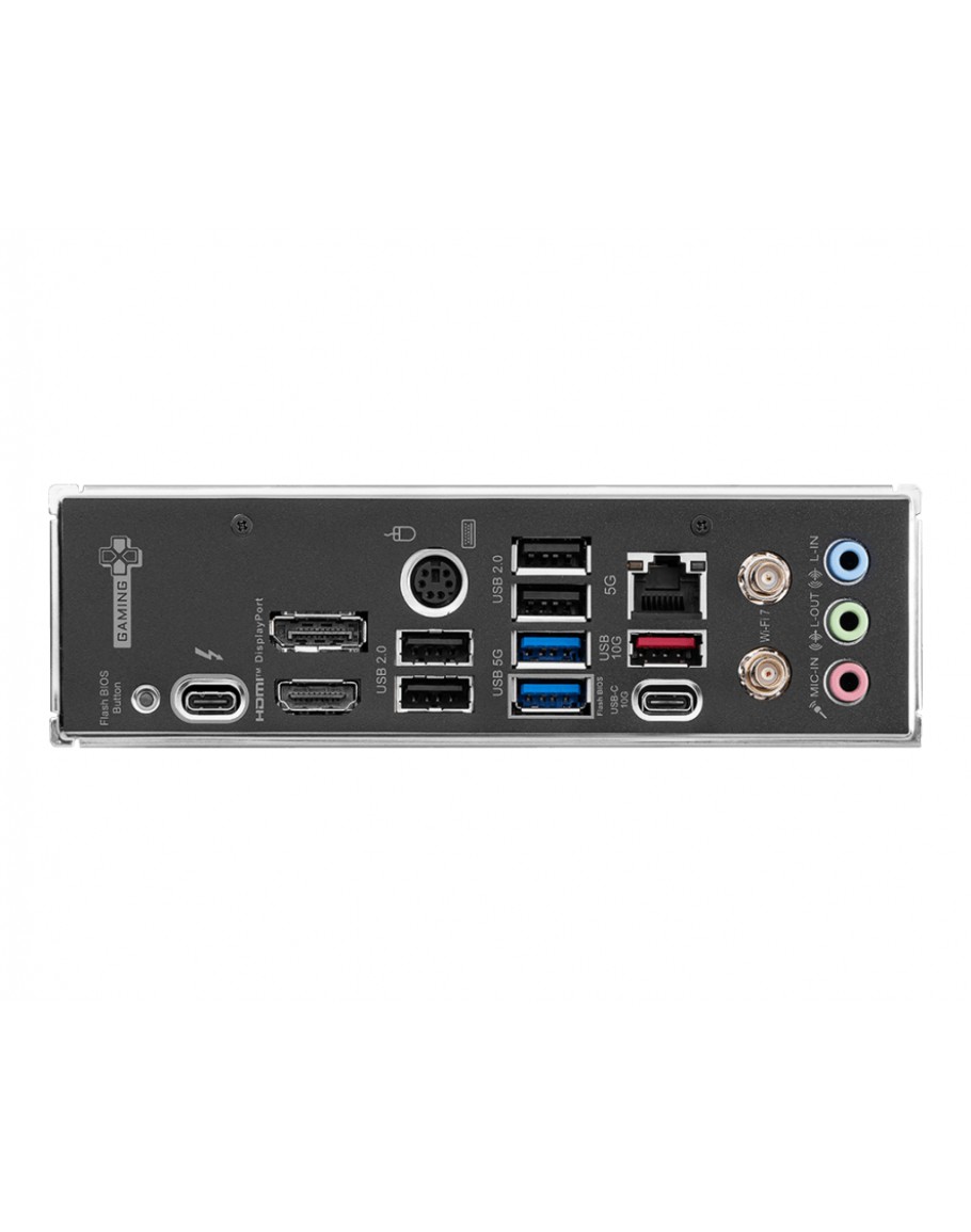 I/O  DisplayPort;Keyboard / Mouse;USB 2.0;5G LAN;Wi-Fi / Bluetooth;Audio Connectors;Flash BIOS Button;Thunderbolt™ 4 40Gbps (Type-C);HDMI™;USB 2.0;USB 5Gbps Type A ports;USB 10 Gbps Type C ports;USB 10 Gbps Type A ports