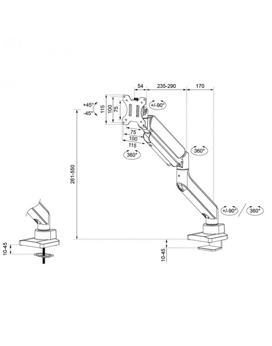 | Регулируема дължина | Height: 65.3 cm (adjustment: 26.1 - 55.5 cm), Width: 12 cm (adjustment: 92 cm), Depth: 56.8 cm (adjustment: 5.4 - 51.1 cm), Adjustment type: Gas spring | |