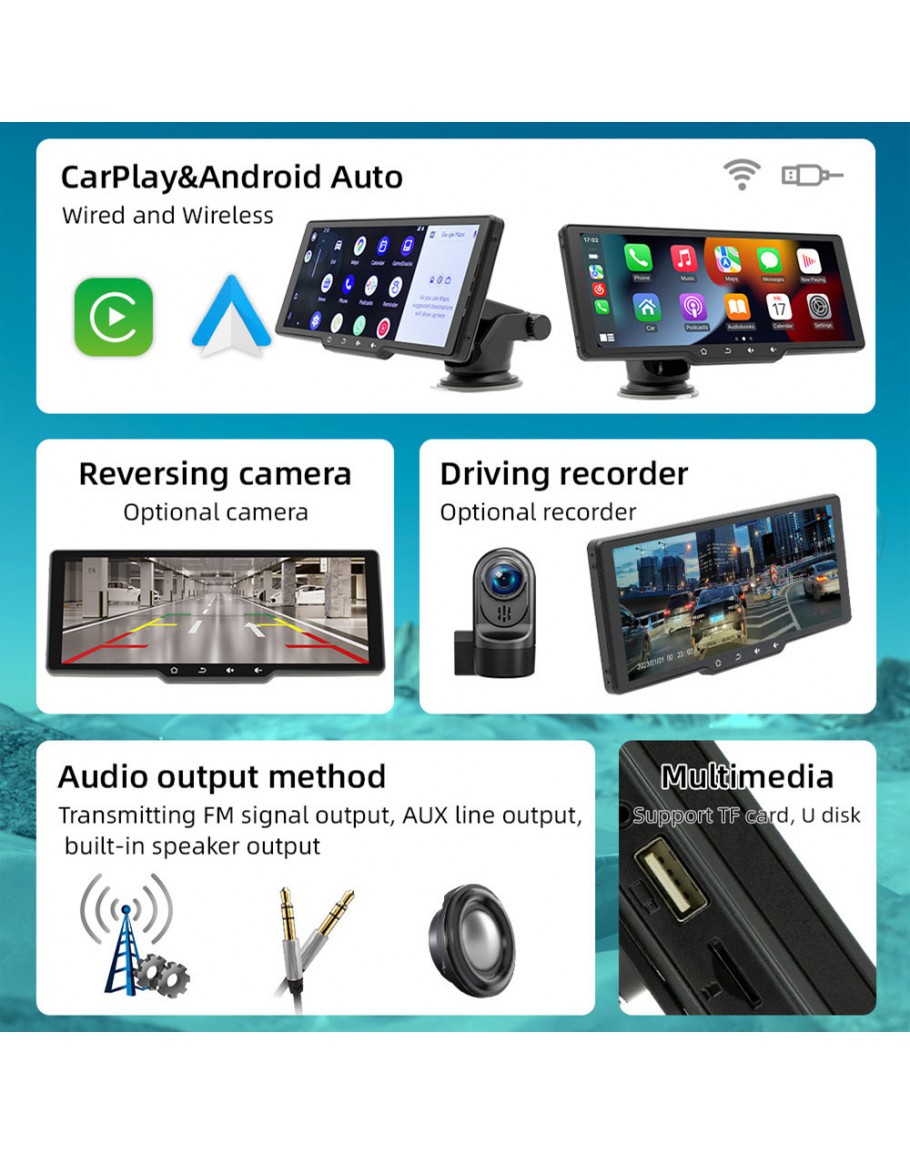 Преносимият CarPlay / Android Auto дисплей е устройство, което ви позволява да интегрирате функциите на вашия смартфон във вашия автомобил. С вградена поддръжка както за Apple CarPlay, така и за Android Auto, този дисплей осигурява безпроблемно свързване и контрол на приложенията от смартфона ви директно на таблото на автомобила. Той е отличен избор за тези, които искат да модернизират своите автомобили без да правят скъпи модификации. Неговият удобен дизайн и широка съвместимост го правят идеален за ежедневна употреба, осигурявайки по-приятно и безопасно шофиране.