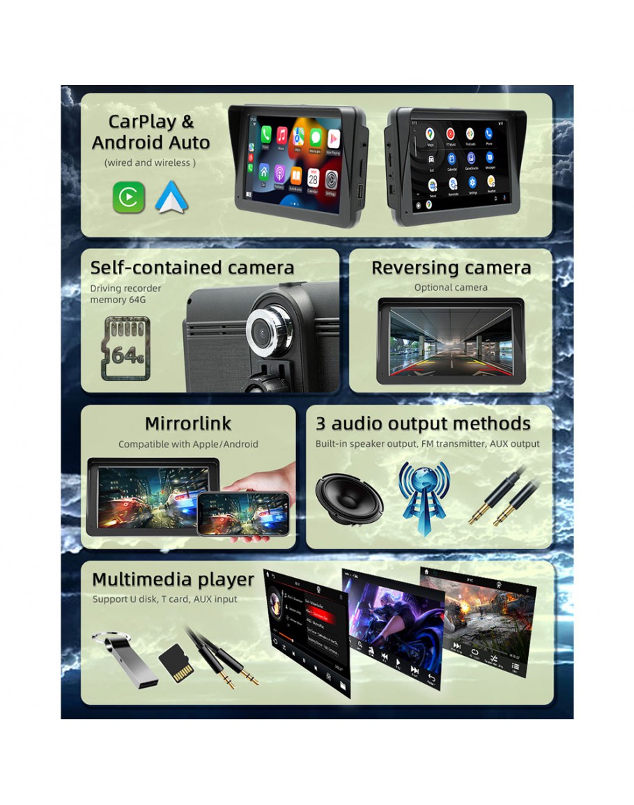Свързва се безжично към вашия смартфон чрез Bluetooth, елиминирайки необходимостта от кабели или допълнителни адаптери. Освен това преносимият CarPlay / Android Auto дисплей може лесно да се монтира на таблото във всяка кола. Също така той разполага със система за захранване, която гарантира, че устройството остава заредено по време на употреба.