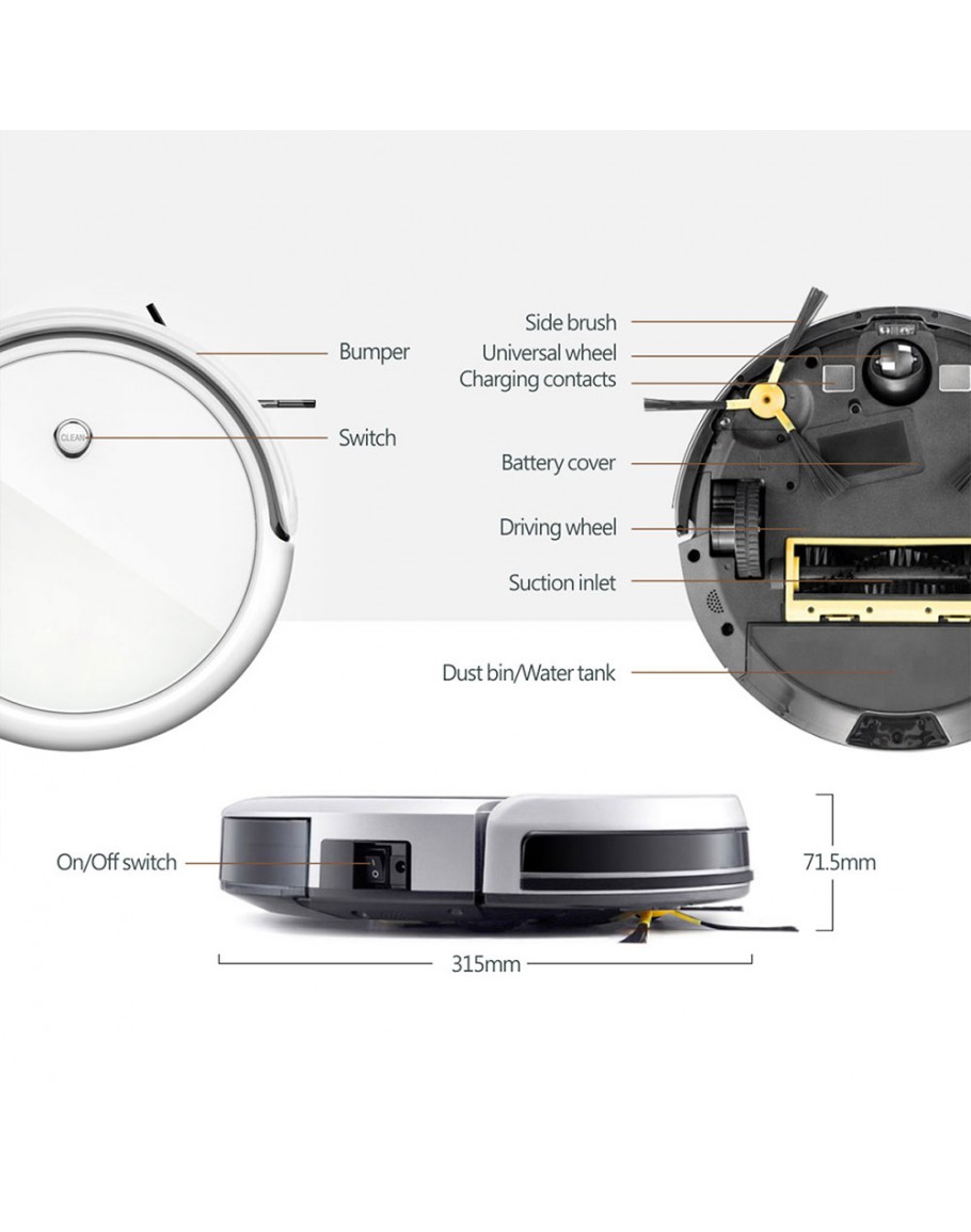 Робот прахосмукачка No brand PST-A3-C, Wi-Fi, Tuya Smart, Бял - 91042
