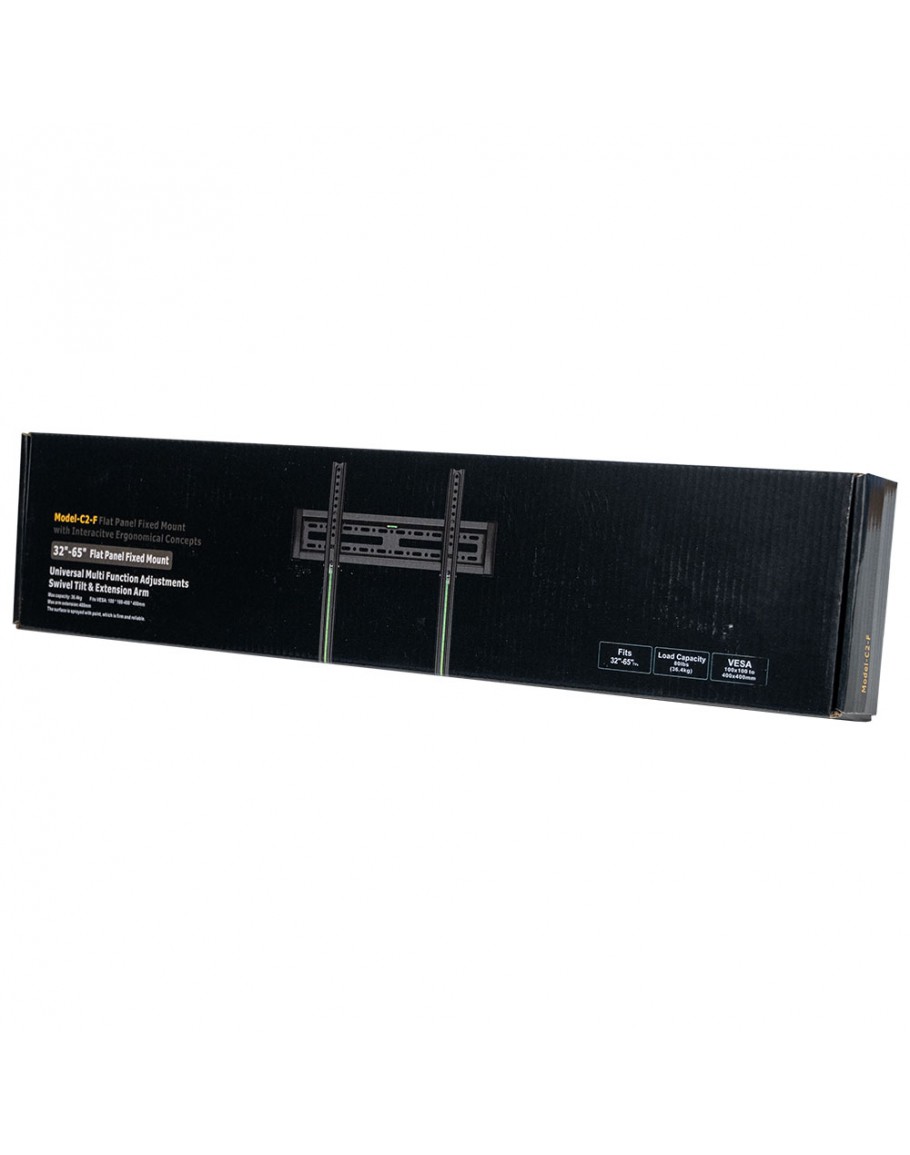 Фиксирана стойка за телевизор за монтаж на стена, подходяща за екрани до 65 инча. Компактна и здрава конструкция в черен цвят, осигуряваща лесен монтаж и стабилно закрепване.