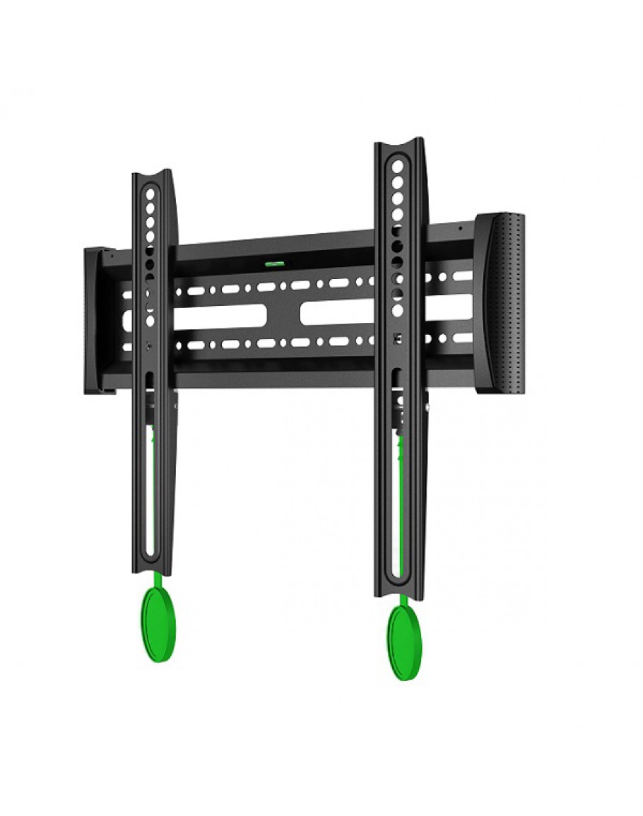 Фиксирана стойка за телевизор за монтаж на стена, подходяща за екрани до 70 инча. Компактна и здрава конструкция в черен цвят, осигуряваща лесен монтаж и стабилно закрепване.