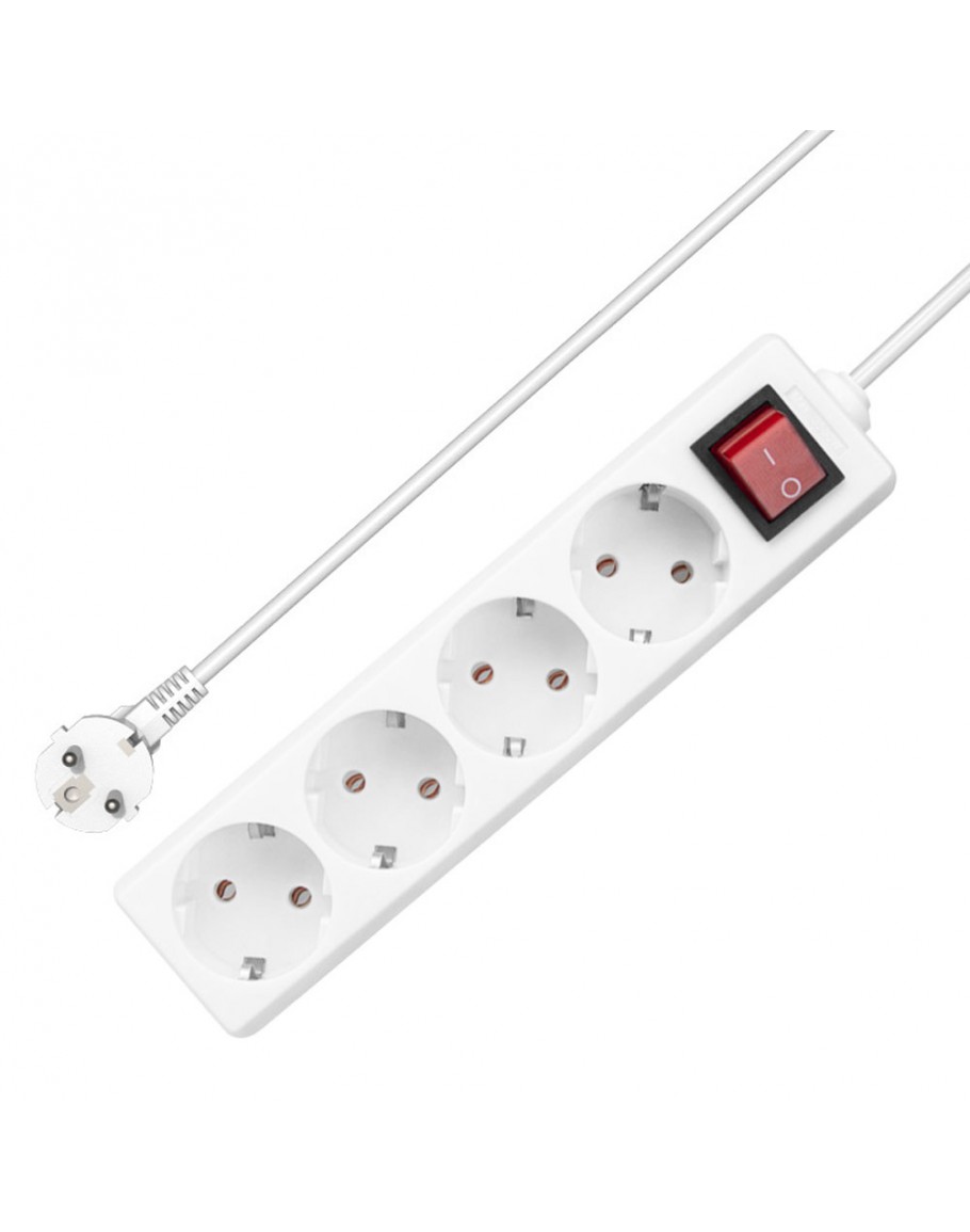 Удължител No brand, 4 гнезда, 250V, 16A, Кабел, 5m, С ключ, Бял - 17879