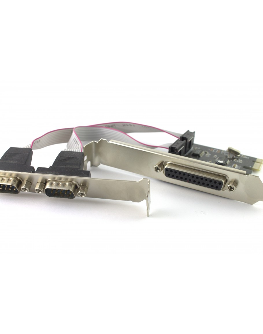 PCI Express Card превръща PCI Express слот на два RS232 (DB9) серийни порта и един паралелен порт. Картата с адаптер разполага с родния PCI Express единен дизайн чип, който ви позволява да се възползвате от пълната PCI Express способност, гарантиращ подобрен скорост и надеждност, като същевременно намали натоварването