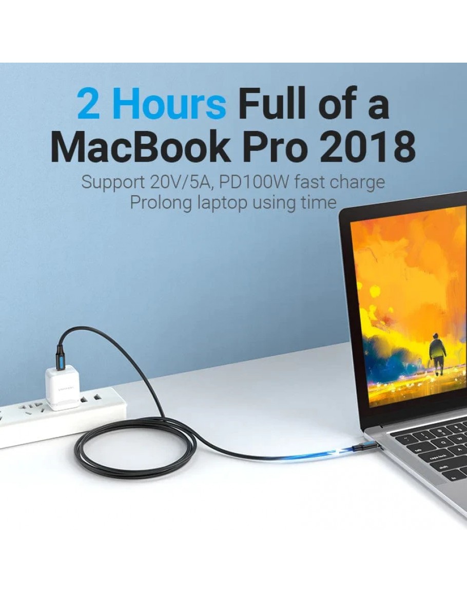 Vention Кабел USB 2.0 Type-C to Type-C - 2M Black 5A Fast Charge - COTBH
