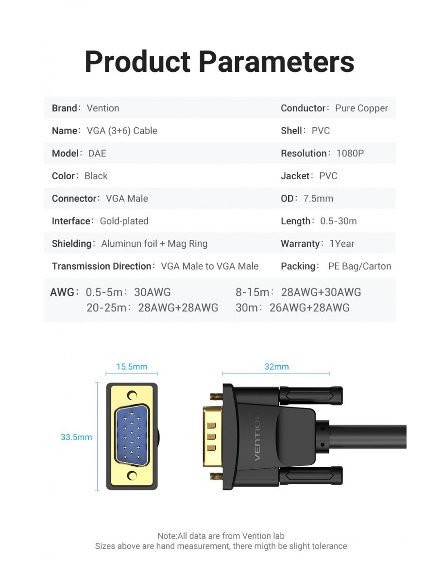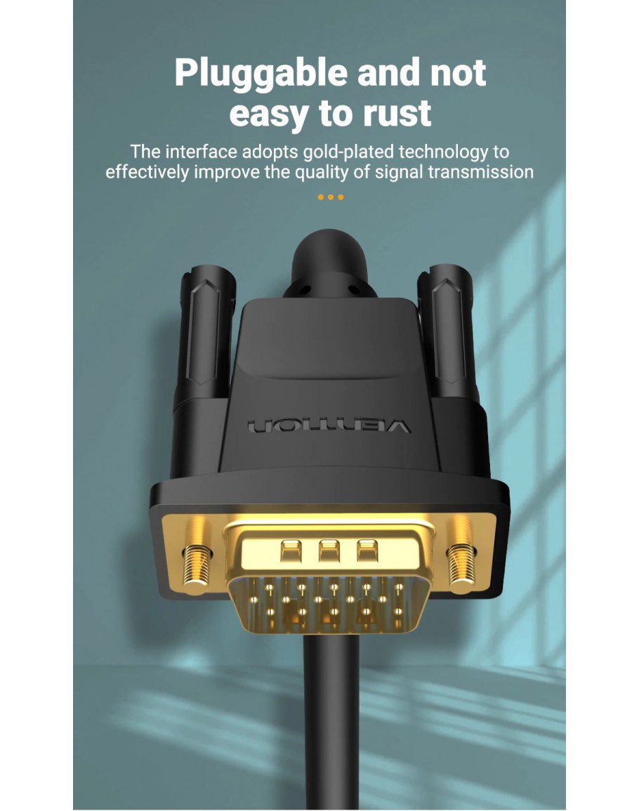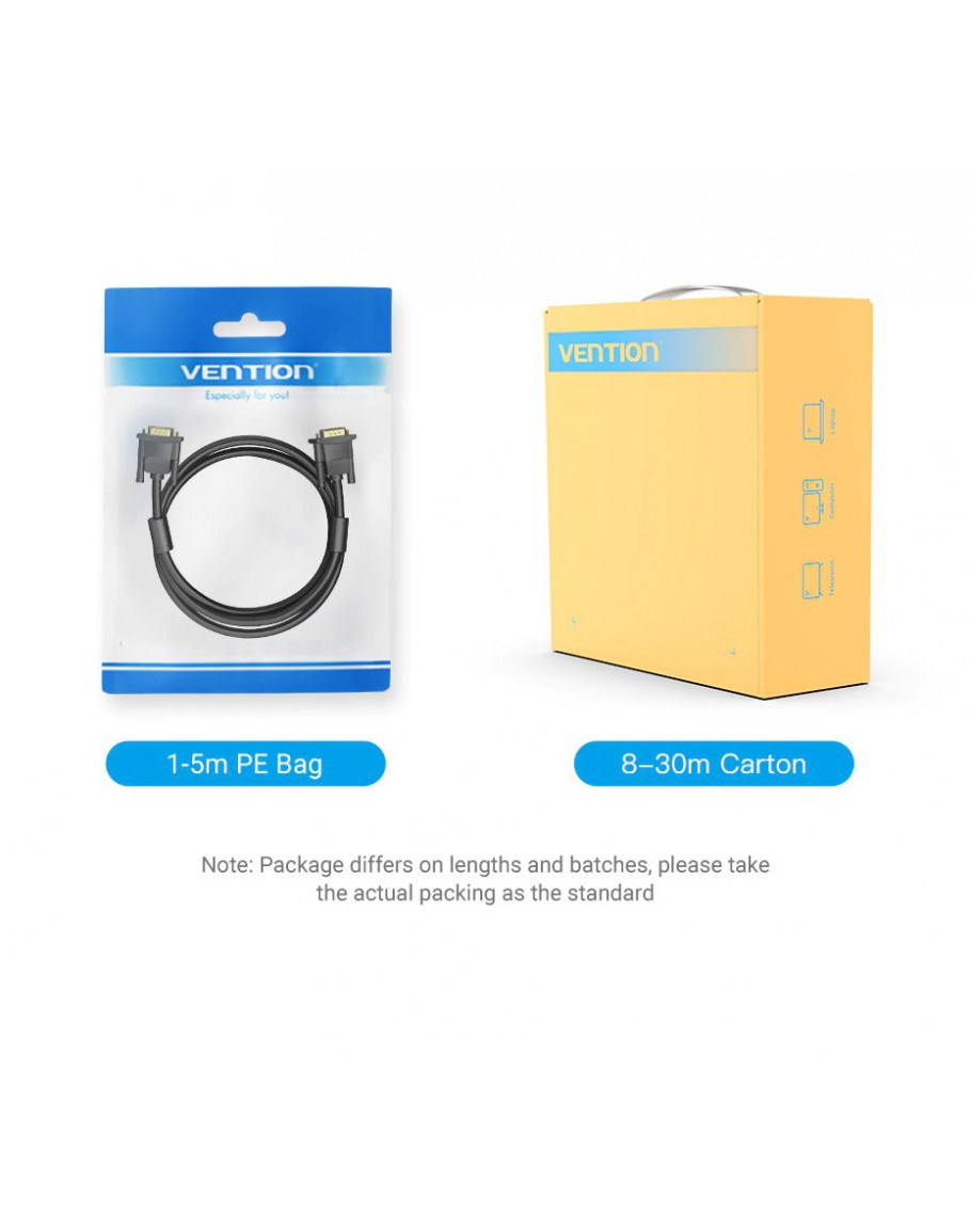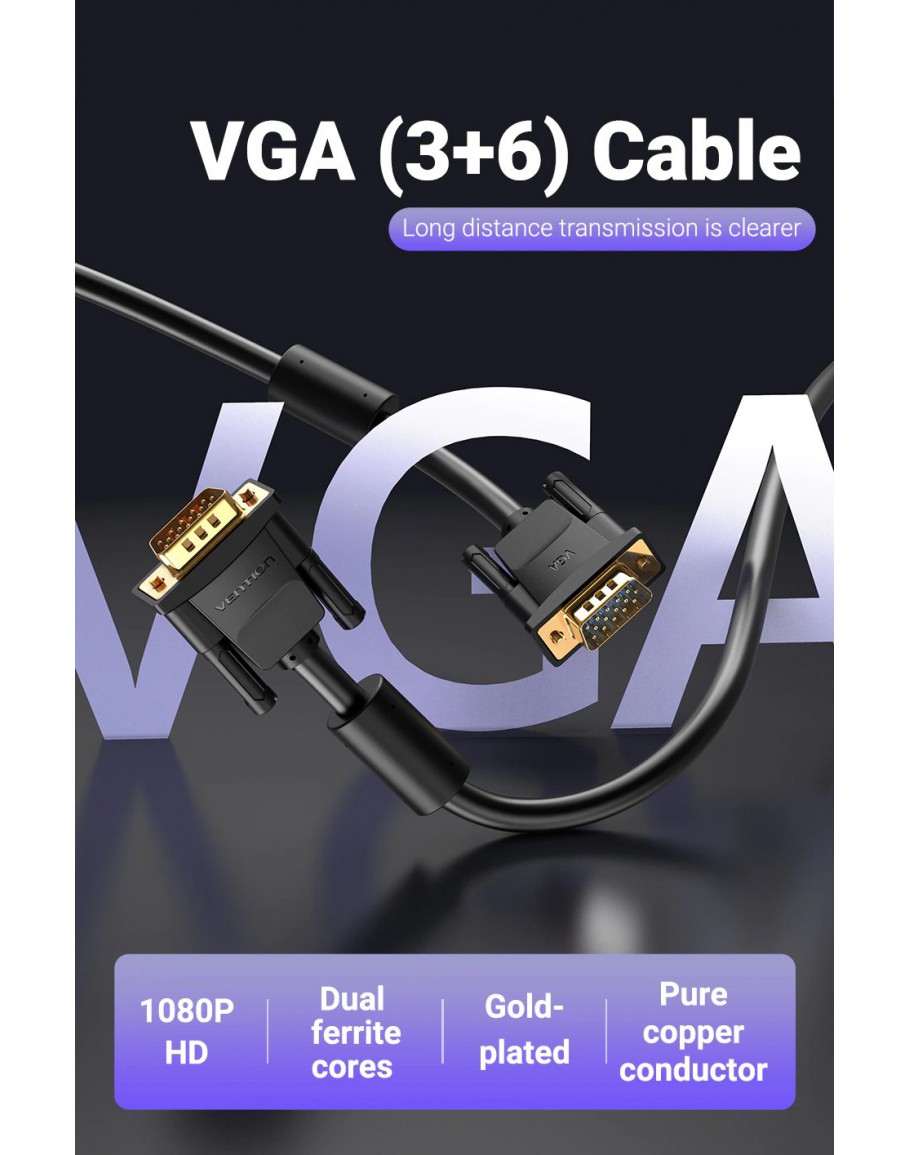 Vention Кабел за монитор Cable VGA HD15 M / M 2.0m Gold Plated, 2 Ferrites - DAEBH